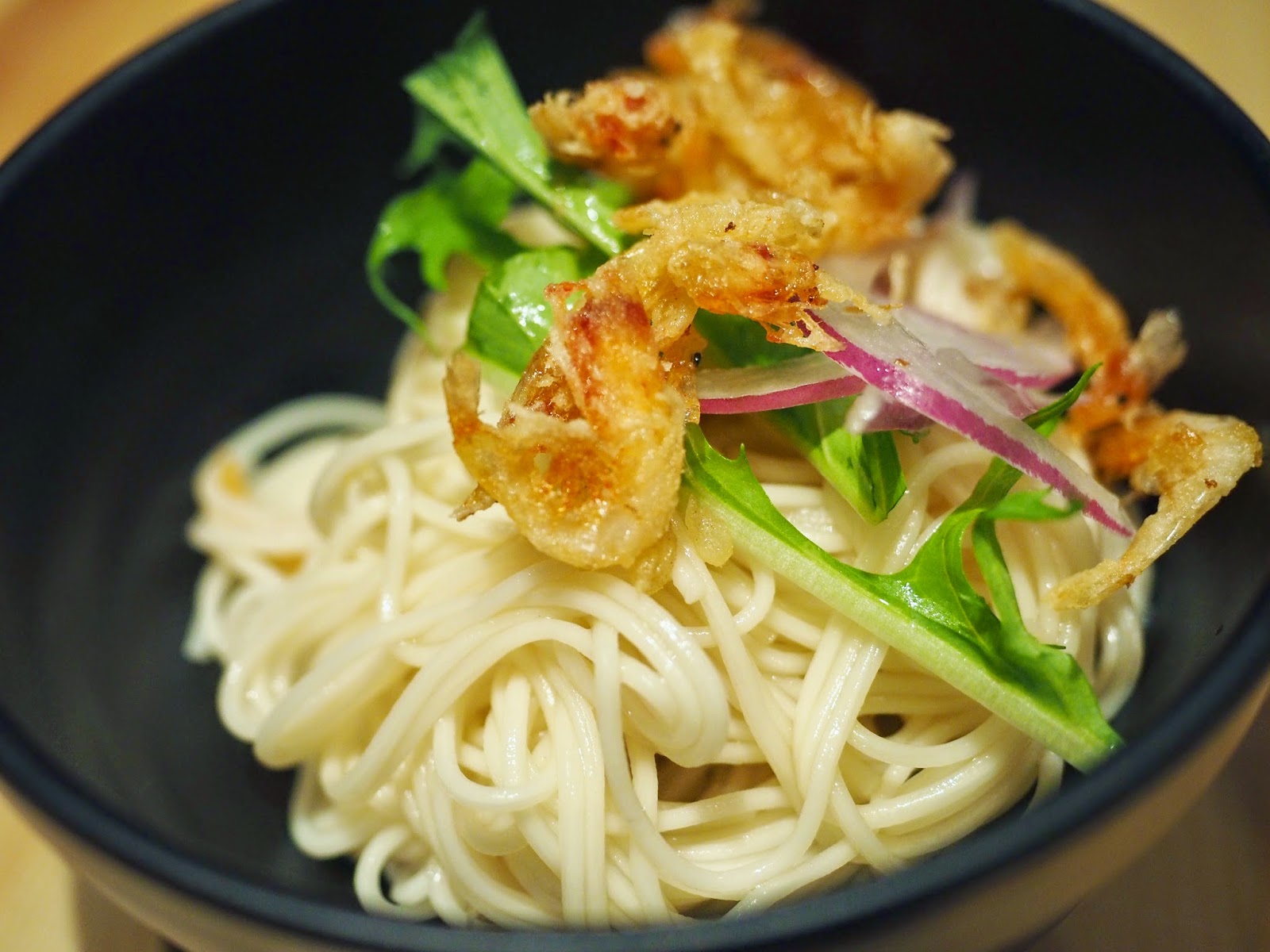甜點前,先來一碗冷柚子素麵配炸櫻花蝦